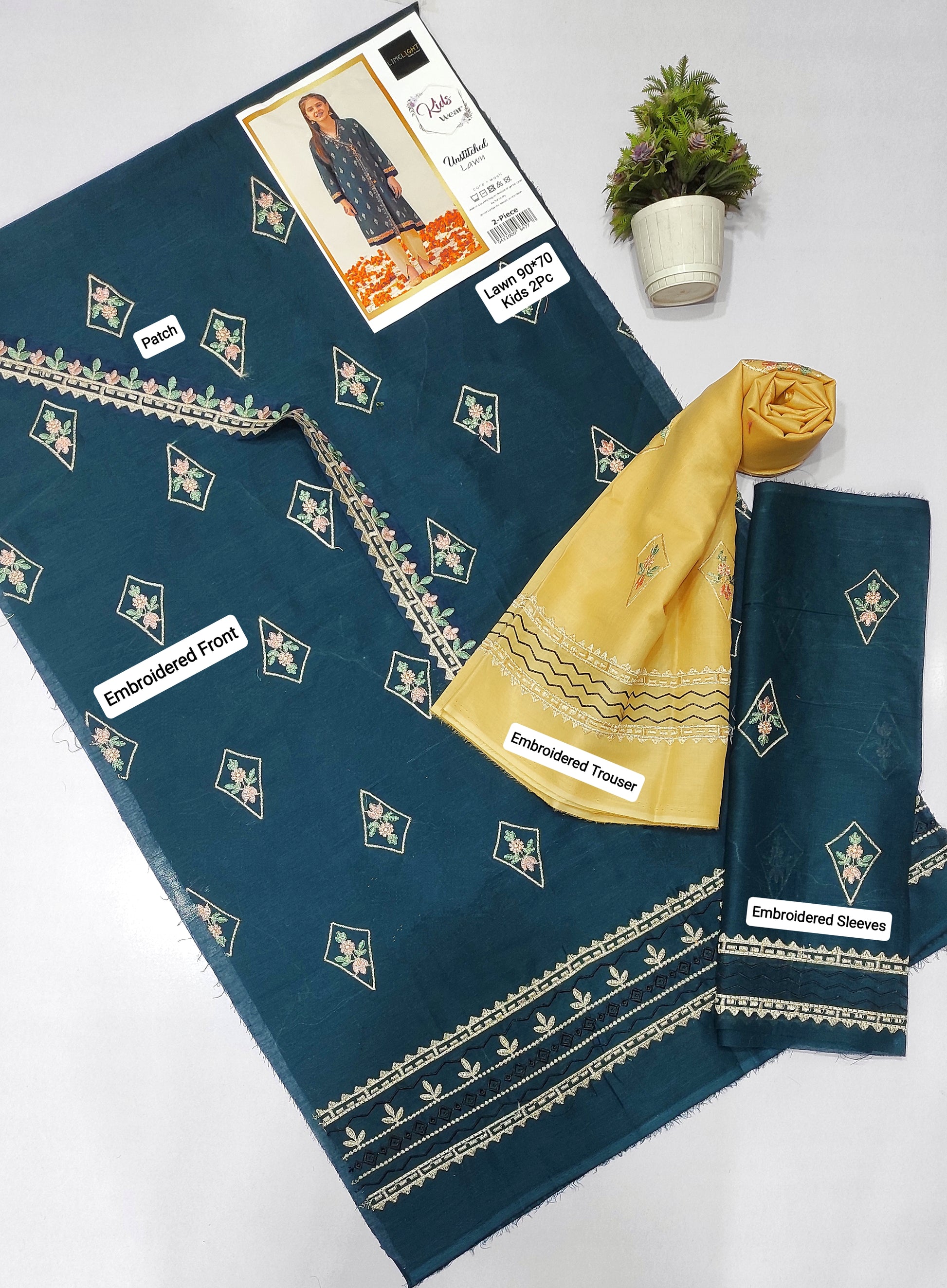 LIME LIGHT Kids Embroidered 2 Piece Unstiched Suit